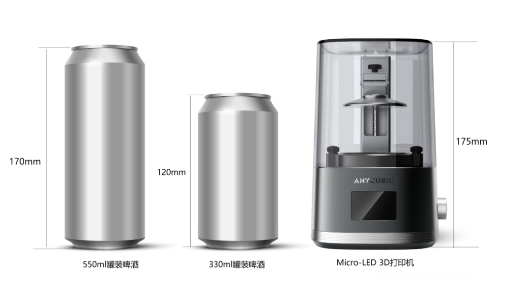 首款Micro LED3D打印機(jī)和罐裝啤酒的對(duì)比圖