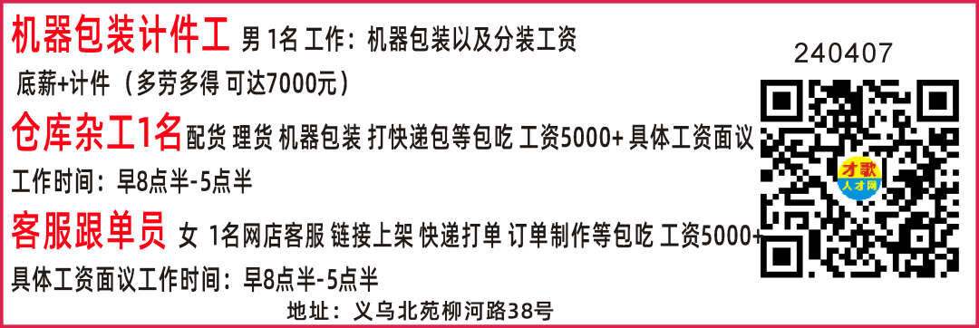 義烏招:服務(wù)員、傳菜、洗碗工配菜03-16