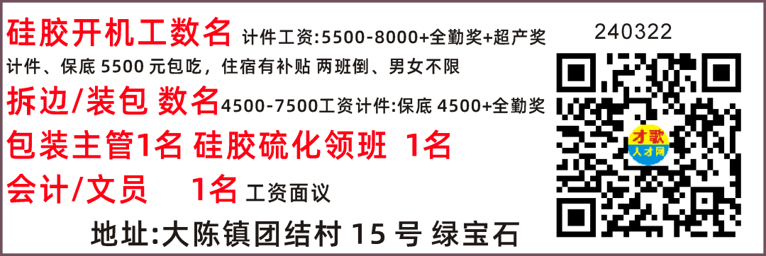 蘇溪招封口機(jī)操作工保底3500+計(jì)03-16