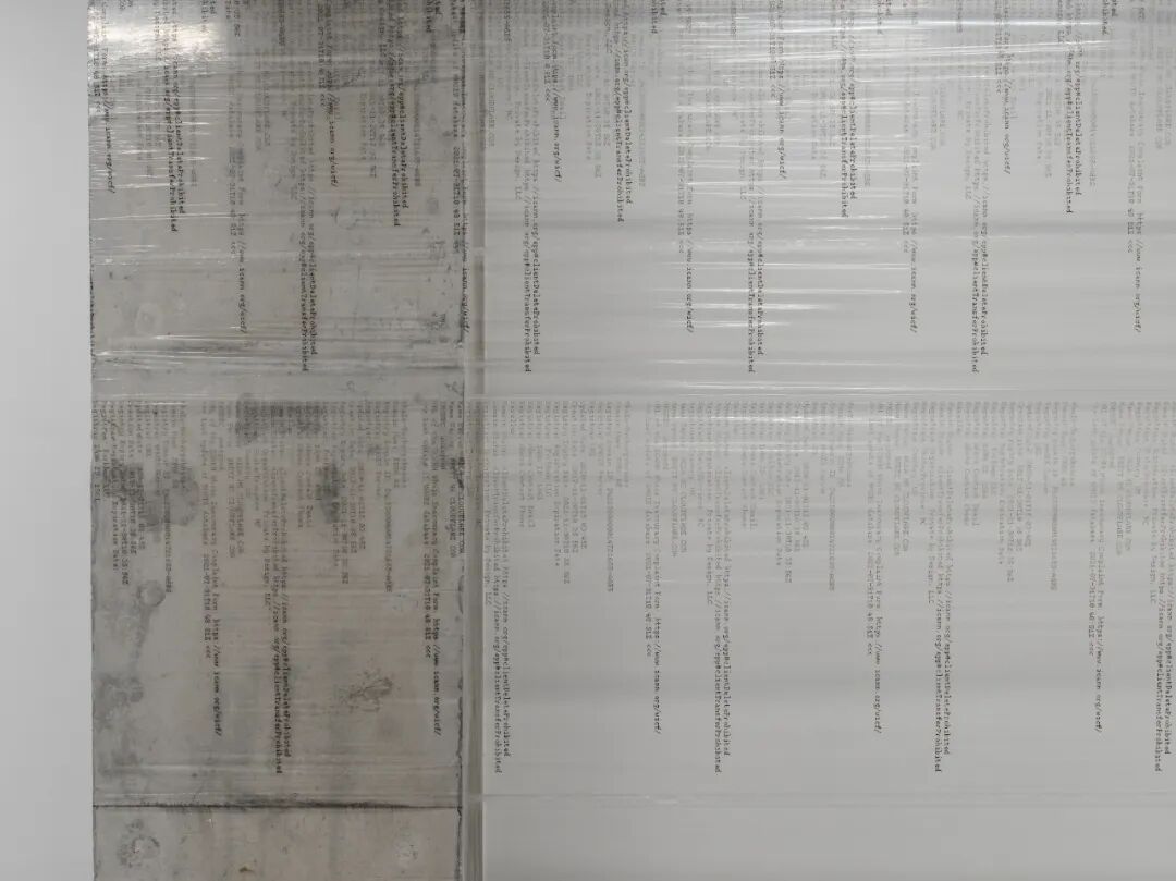 ddrk.me是一被譯為“低端影視”的視頻網(wǎng)站,是域外供給非正版高清視頻的著名網(wǎng)站。其網(wǎng)站域名并不對應(yīng)“低端影視”的漢字拼音,亦不指涉網(wǎng)站受眾,而是站?帶有自嘲和戲謔的表達。在網(wǎng)站的關(guān)于?面,站?寫道:“咱們的目的是供給最方便的,同期支持電腦和移動設(shè)備的超清畫質(zhì)在線觀看影視劇體驗?!?藝術(shù)家將域名的whois信息記錄了下來,把這些信息打印在工業(yè)薄膜上,放進空間中。薄膜很容易產(chǎn)生靜電,會黏在皮膚上,地上墻上,亦會吸附灰塵。