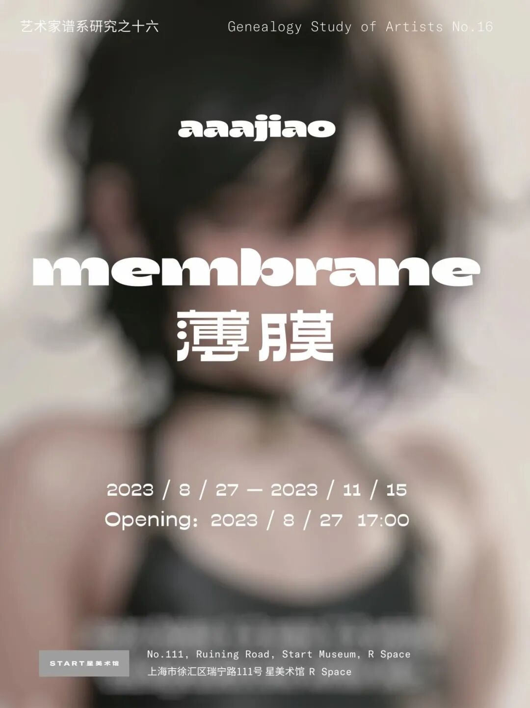 aaajiao presents his solo exhibition "Genealogy Study of Artists No. 16 aaajiao: membrane" at the Start Museum. This exhibition features 6 installations and 2 video works of aaajiao. The exhibition opened on 27 August 2023 and will last until 15 November.