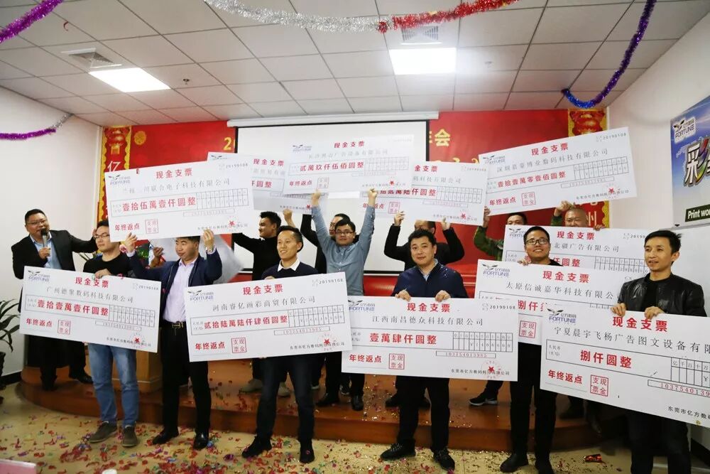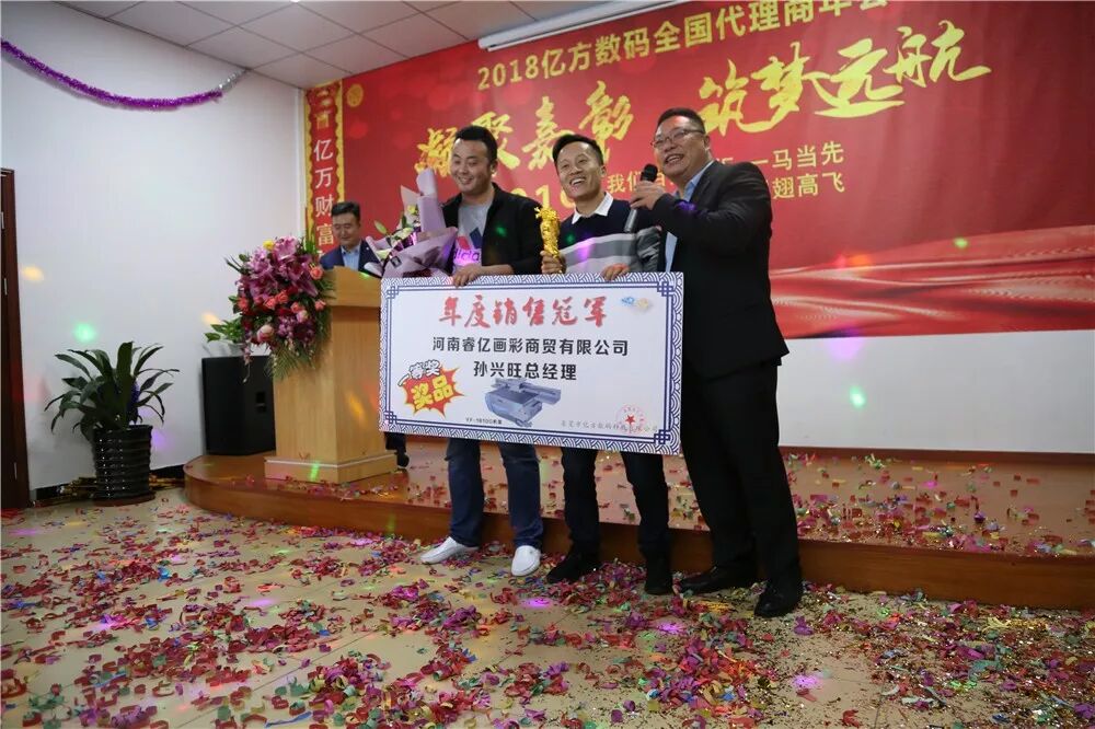 河南睿億畫彩商貿(mào)有限機構孫興旺總經(jīng)理作為名副其實的年度營銷總冠軍,得到年終返利26萬余元人民幣,另送一臺UV機。