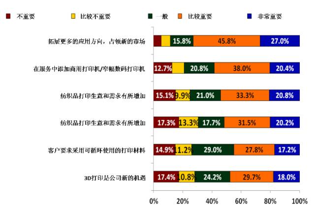 然而,分析結(jié)果可能不足精細(xì),由于受訪者中有海量來自兩次數(shù)碼紡織印刷會議中的人員,她們對紡織品印刷有高于平均水平的關(guān)注,會影響整體狀況。但紡織品數(shù)字印刷的確是將來重要的發(fā)展方向。