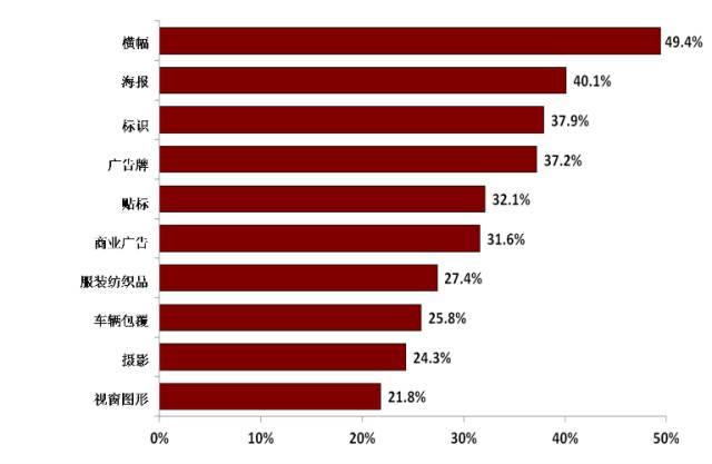 受訪者選出的近期排行較前的應(yīng)用中(圖6),橫幅(49%)、海報(bào)(40%)、標(biāo)識(38%) 及宣傳牌(37%)仍然是排名中前四的制品,然則,她們的發(fā)展方向卻是區(qū)別的。