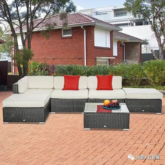Outsunny 庭院軟墊藤條沙發(fā)+茶幾6件套4.8折 799.99加元包郵!