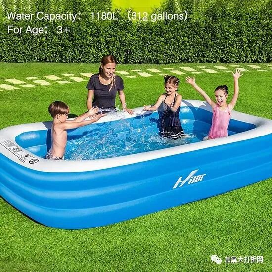歷史新低!Hilor 3米 加大號全尺寸 矩形充氣游泳池4.8折 64.99加元包郵!2色可選!會員專享!