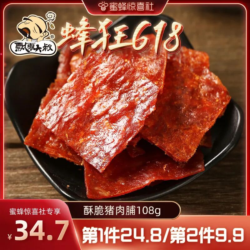 【蜜蜂驚喜社】飄零大叔酥脆豬肉脯香辣味靖江肉干豬油渣解饞零食復(fù)制這段信息,打開手機(jī)淘◇寳就可