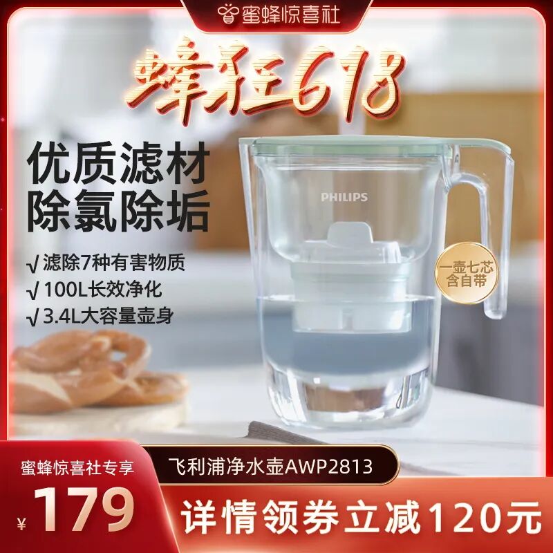 【蜜蜂驚喜社】飛利浦凈水壺過濾凈水器家用廚房自來水過濾濾水杯復(fù)制這段信息,打開手機(jī)淘◇寳就可