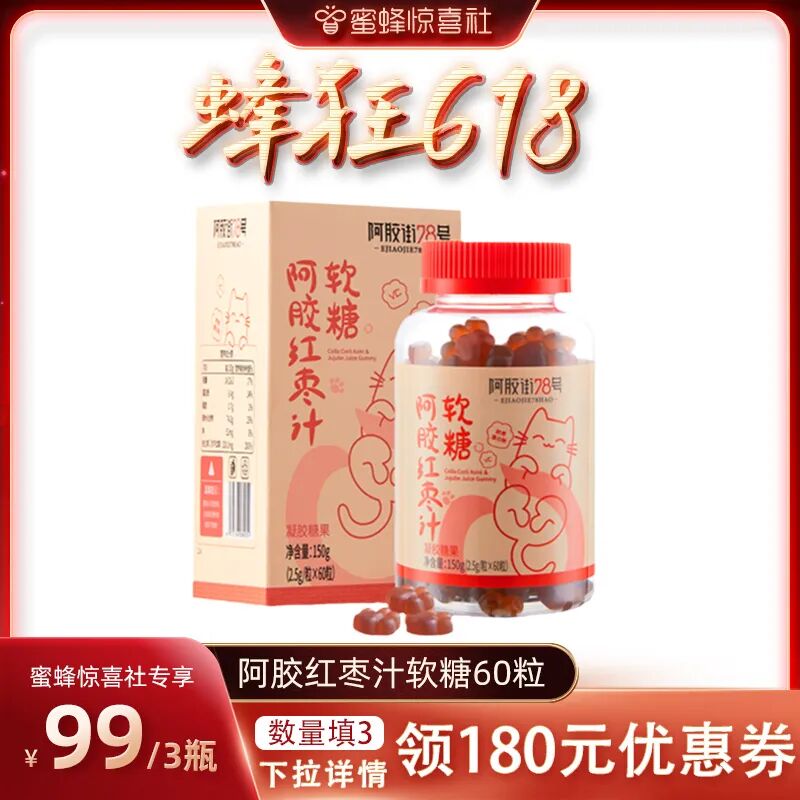 【蜜蜂驚喜社】東阿阿膠旗艦店阿膠紅棗果汁膠原蛋白貓爪軟糖60粒復(fù)制這段信息,打開手機(jī)淘◇寳就可