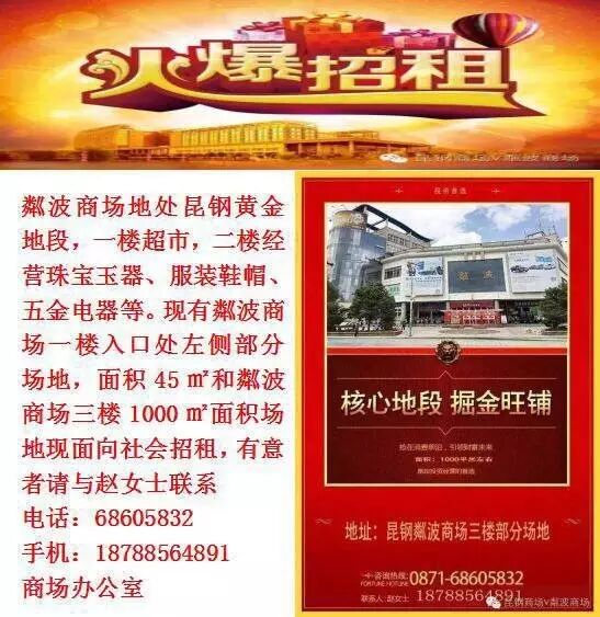 現有昆鋼凌波農貿市場盈利商鋪轉讓或出租,面積13平方上下,可做各類小吃或百貨,接手就可盈利,該鋪面位置好,人流量集中,人流量大,穩(wěn)賺不賠,因自己經營其它項目無暇顧及,特此忍痛轉讓,有意向的伴侶趕緊聯系我,先聯系先得,先掙錢,穩(wěn)賺不賠,非誠勿擾!
